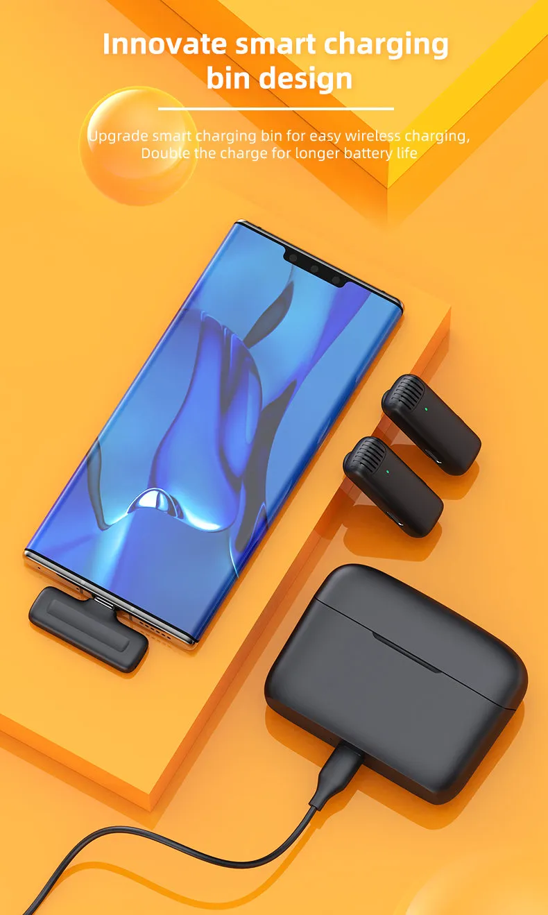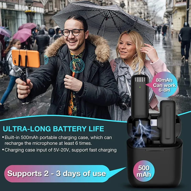 ?Portable Smart Charging Case?- This storage box is also a charging compartment for the microphones. After the storage box is fully charged, it maximum allow charge for 2 mics more than 4 times, maximum support the transmitter to continue working about 4-6 hours. Say goodbye to messy cables, compact and lightweight design is easy to carry around, perfect for outdoor recording.