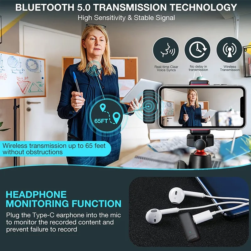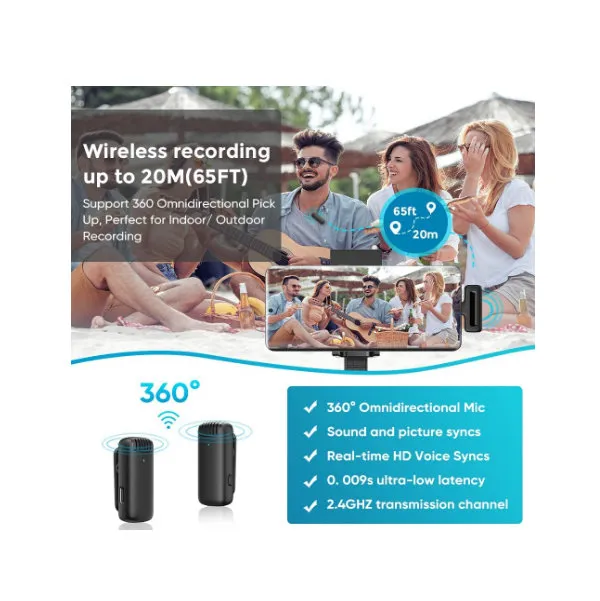 ?Multi-Scenes Usage & 65FT Audio Range?- The Leereel small lapel Microfono is designed for YouTube/Facebook Live Streaming, TikTok Creators, Vloggers, Bloggers and other video recording lovers, especially interviews. Easy to connect and cover 20meter/65FT for signal, 0.009s delay in transmission, helps you reduce power trouble and clearly recording or taking video at a further distance.
